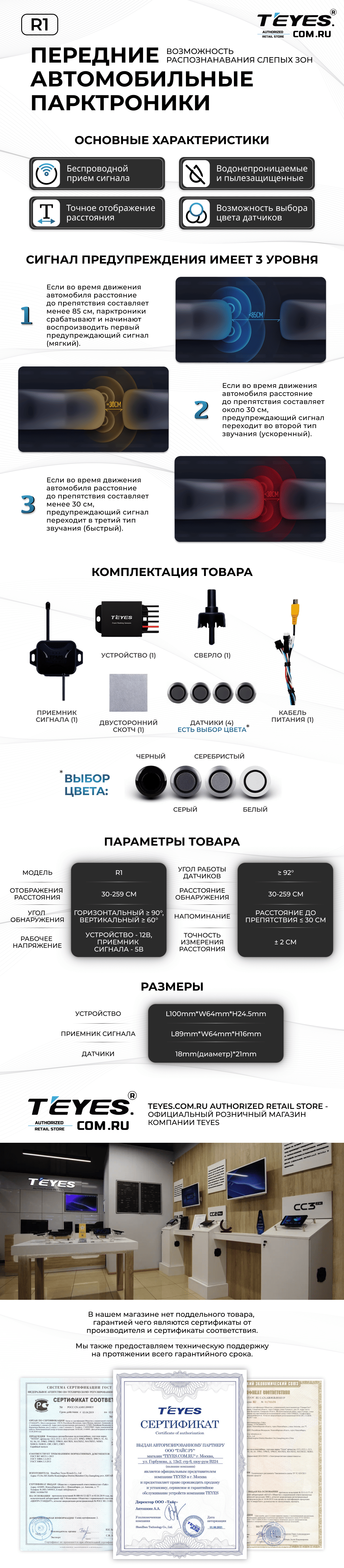 Передние парктроники Teyes R1 для CC4 Pro / CC4 / CC4L / CC3 2K / CC3 / CC3L / CC2 Plus / SPRO Plus / TPRO2 / LUX ONE (Серые) - купить всего за 12 900 руб. в интернет-магазине в Магнитогорске Teyes.com.ru. ✓ Самый лучший выбор мультимедиа ✓ Лучшая замена штатному ГУ ✓ Тел. +7 (800) 775-31-74