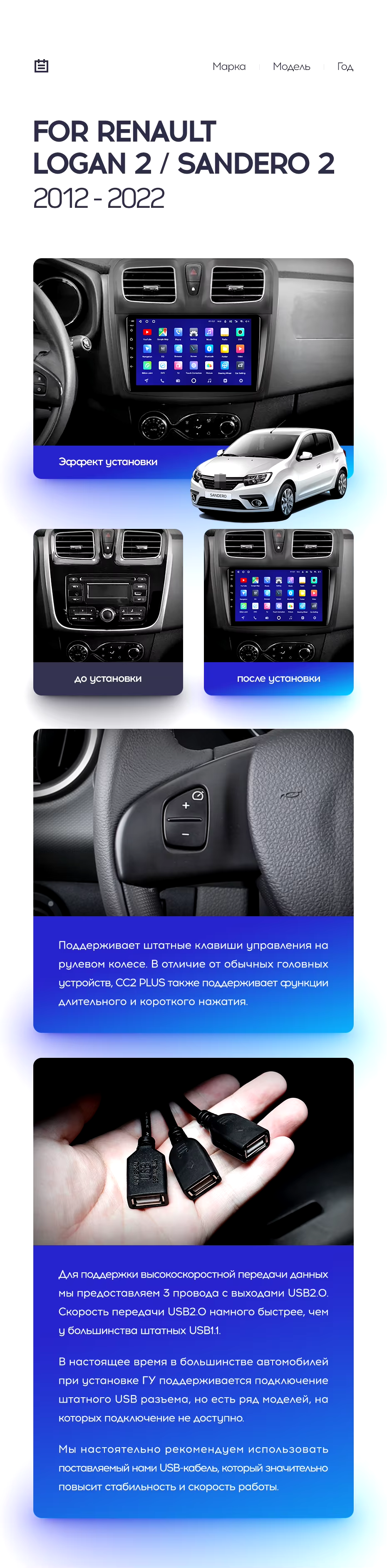 Штатная магнитола Teyes CC2 Plus 4/32 Renault Logan 2 (2012-2022) F2 - купить всего за 35 000 руб. в интернет-магазине в Магнитогорске Teyes.com.ru. ✓ Самый лучший выбор мультимедиа ✓ Лучшая замена штатному ГУ ✓ Тел. +7 (800) 775-31-74