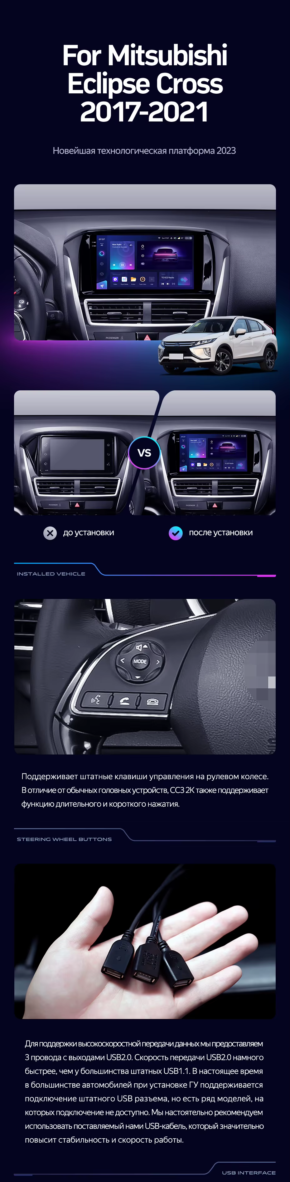 Штатная магнитола Teyes CC3 2K 4/32 Mitsubishi Eclipse Cross 1 (2017-2021) F1 - купить всего за 39 940 руб. в интернет-магазине в Магнитогорске Teyes.com.ru. ✓ Самый лучший выбор мультимедиа ✓ Лучшая замена штатному ГУ ✓ Тел. +7 (800) 775-31-74