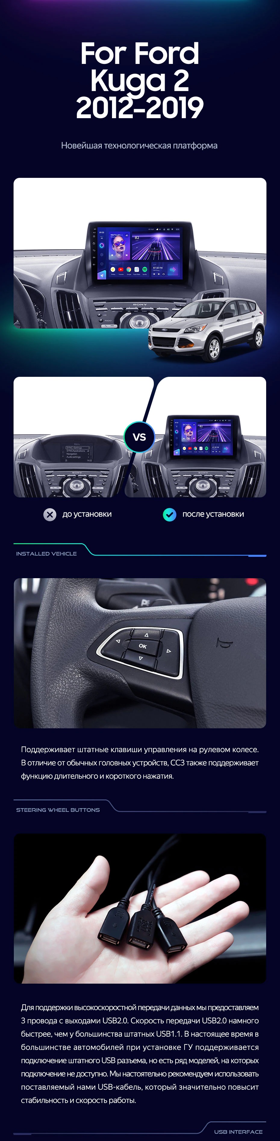 Штатная магнитола Teyes CC3 4/32 Ford Kuga 2 (2012-2019) Тип-A - купить всего за 33 450 руб. в интернет-магазине в Магнитогорске Teyes.com.ru. ✓ Самый лучший выбор мультимедиа ✓ Лучшая замена штатному ГУ ✓ Тел. +7 (800) 775-31-74