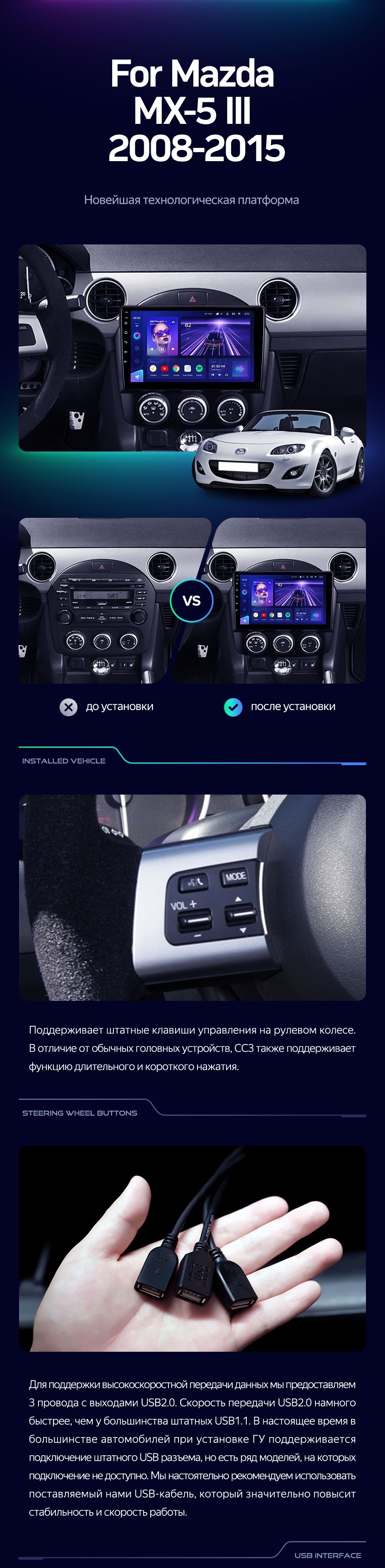 Штатная магнитола Teyes CC3 4/32 Mazda MX-5 (2008-2015) - купить всего за 34 230 руб. в интернет-магазине в Магнитогорске Teyes.com.ru. ✓ Самый лучший выбор мультимедиа ✓ Лучшая замена штатному ГУ ✓ Тел. +7 (800) 775-31-74