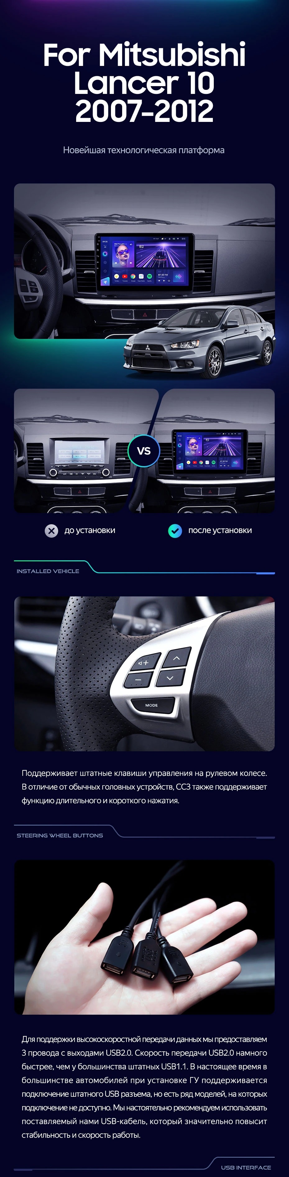 Штатная магнитола Teyes CC3 4/32 Mitsubishi Lancer 10 CY (2007-2012) Тип-B - купить всего за 32 700 руб. в интернет-магазине в Магнитогорске Teyes.com.ru. ✓ Самый лучший выбор мультимедиа ✓ Лучшая замена штатному ГУ ✓ Тел. +7 (800) 775-31-74