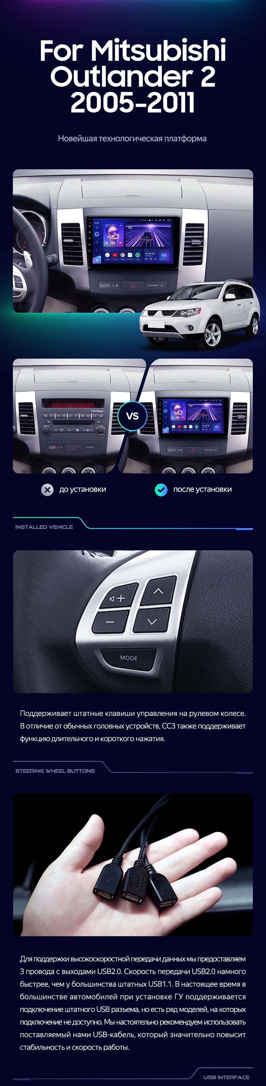 Штатная магнитола Teyes CC3 4/32 Mitsubishi Outlander 2 (2005-2011) Тип-B - купить всего за 32 630 руб. в интернет-магазине в Магнитогорске Teyes.com.ru. ✓ Самый лучший выбор мультимедиа ✓ Лучшая замена штатному ГУ ✓ Тел. +7 (800) 775-31-74