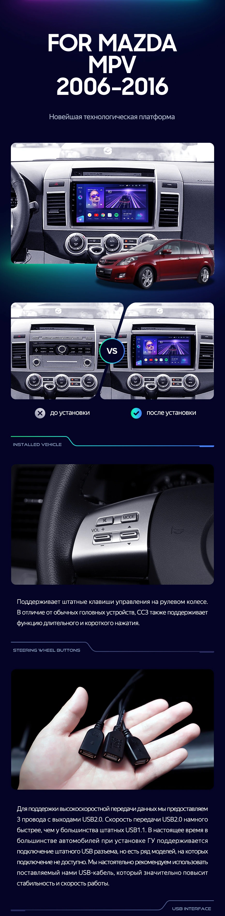 Штатная магнитола Teyes CC3L 4/32 Mazda MPV LY (2006-2016) - купить всего за 30 200 руб. в интернет-магазине в Магнитогорске Teyes.com.ru. ✓ Самый лучший выбор мультимедиа ✓ Лучшая замена штатному ГУ ✓ Тел. +7 (800) 775-31-74