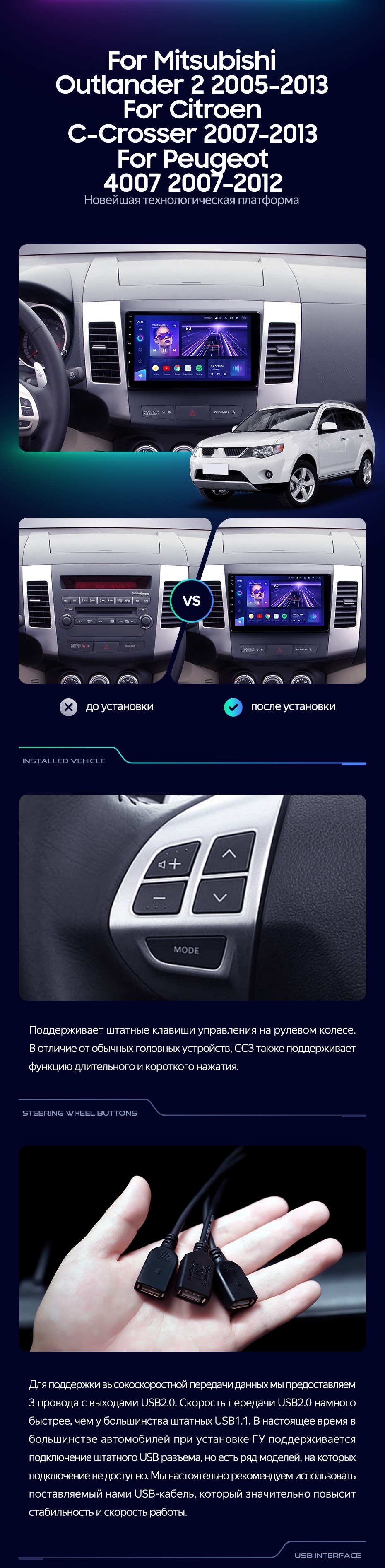 Штатная магнитола Teyes CC3L 4/32 Mitsubishi Outlander 2 (2005-2011) Тип-A - купить всего за 28 200 руб. в интернет-магазине в Магнитогорске Teyes.com.ru. ✓ Самый лучший выбор мультимедиа ✓ Лучшая замена штатному ГУ ✓ Тел. +7 (800) 775-31-74