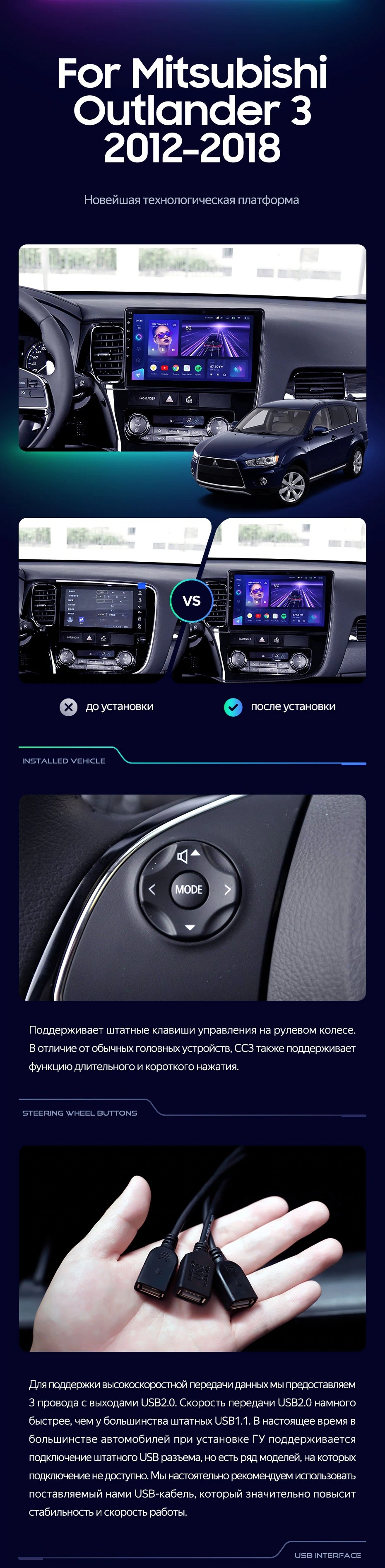 Штатная магнитола Teyes CC3L 4/32 Mitsubishi Outlander 3 (2012-2018) Тип-B - купить всего за 29 250 руб. в интернет-магазине в Магнитогорске Teyes.com.ru. ✓ Самый лучший выбор мультимедиа ✓ Лучшая замена штатному ГУ ✓ Тел. +7 (800) 775-31-74