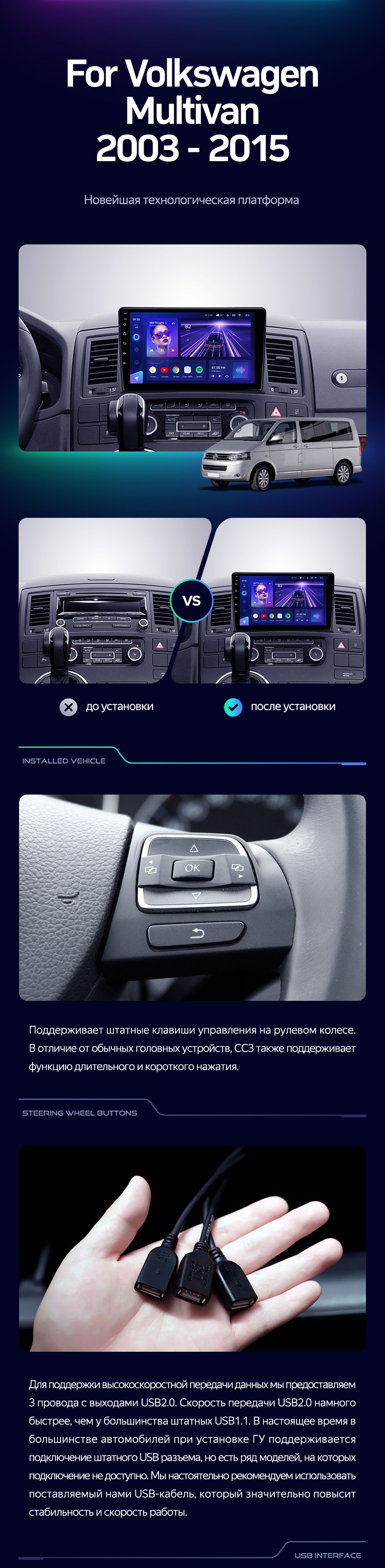 Штатная магнитола Teyes CC3L 4/32 Volkswagen Multivan T5 (2003-2015) - купить всего за 29 190 руб. в интернет-магазине в Магнитогорске Teyes.com.ru. ✓ Самый лучший выбор мультимедиа ✓ Лучшая замена штатному ГУ ✓ Тел. +7 (800) 775-31-74