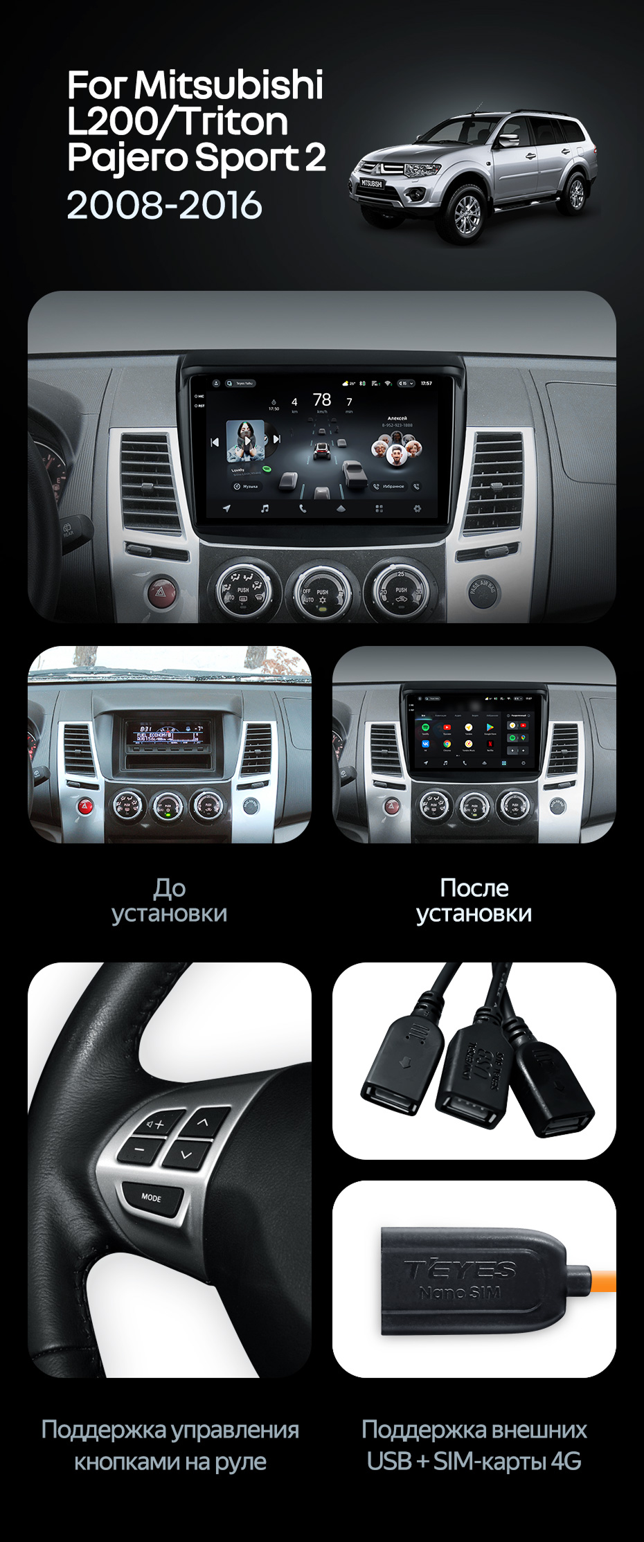 Штатная магнитола Teyes CC4 6/64 Mitsubishi L200 (2008-2016) - купить всего за 43 550 руб. в интернет-магазине в Магнитогорске Teyes.com.ru. ✓ Самый лучший выбор мультимедиа ✓ Лучшая замена штатному ГУ ✓ Тел. +7 (800) 775-31-74
