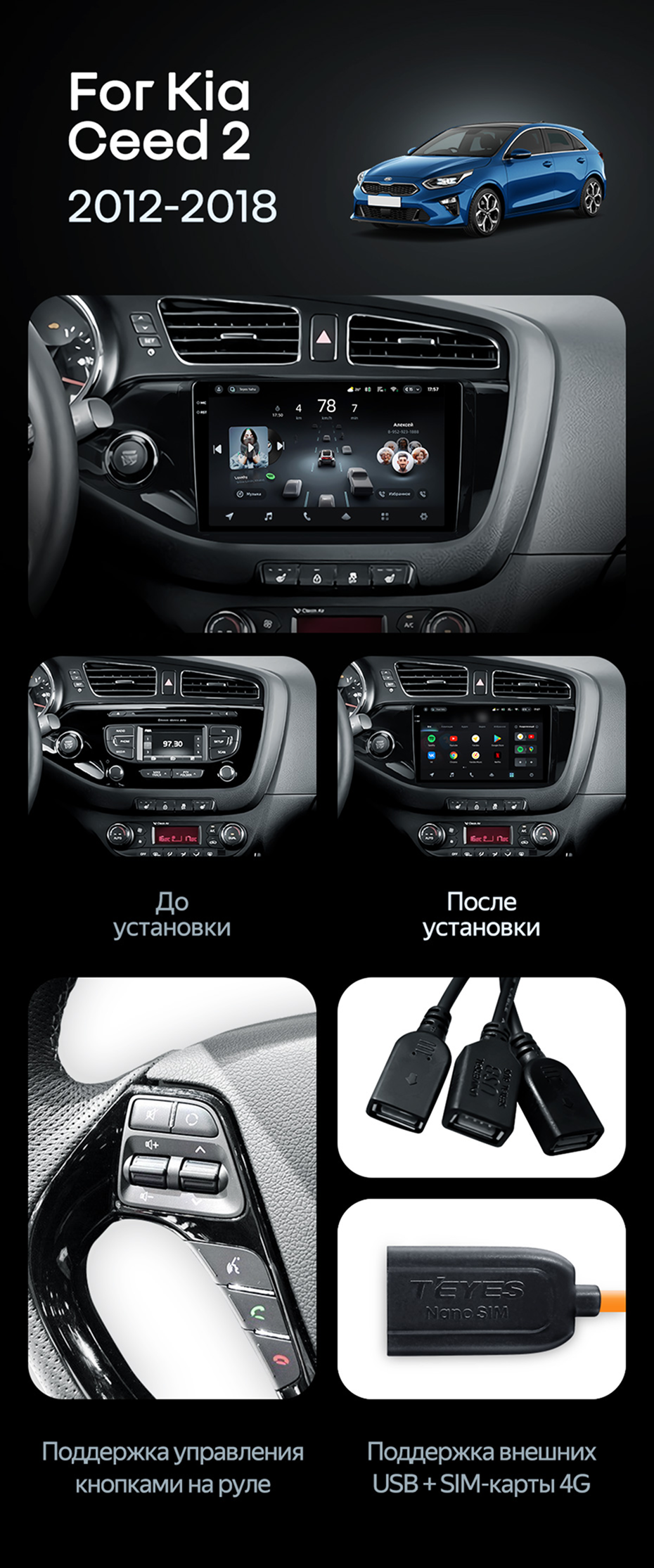 Штатная магнитола Teyes CC4 8/128 Kia Ceed 2 JD (2012-2018) - купить всего за 48 120 руб. в интернет-магазине в Магнитогорске Teyes.com.ru. ✓ Самый лучший выбор мультимедиа ✓ Лучшая замена штатному ГУ ✓ Тел. +7 (800) 775-31-74