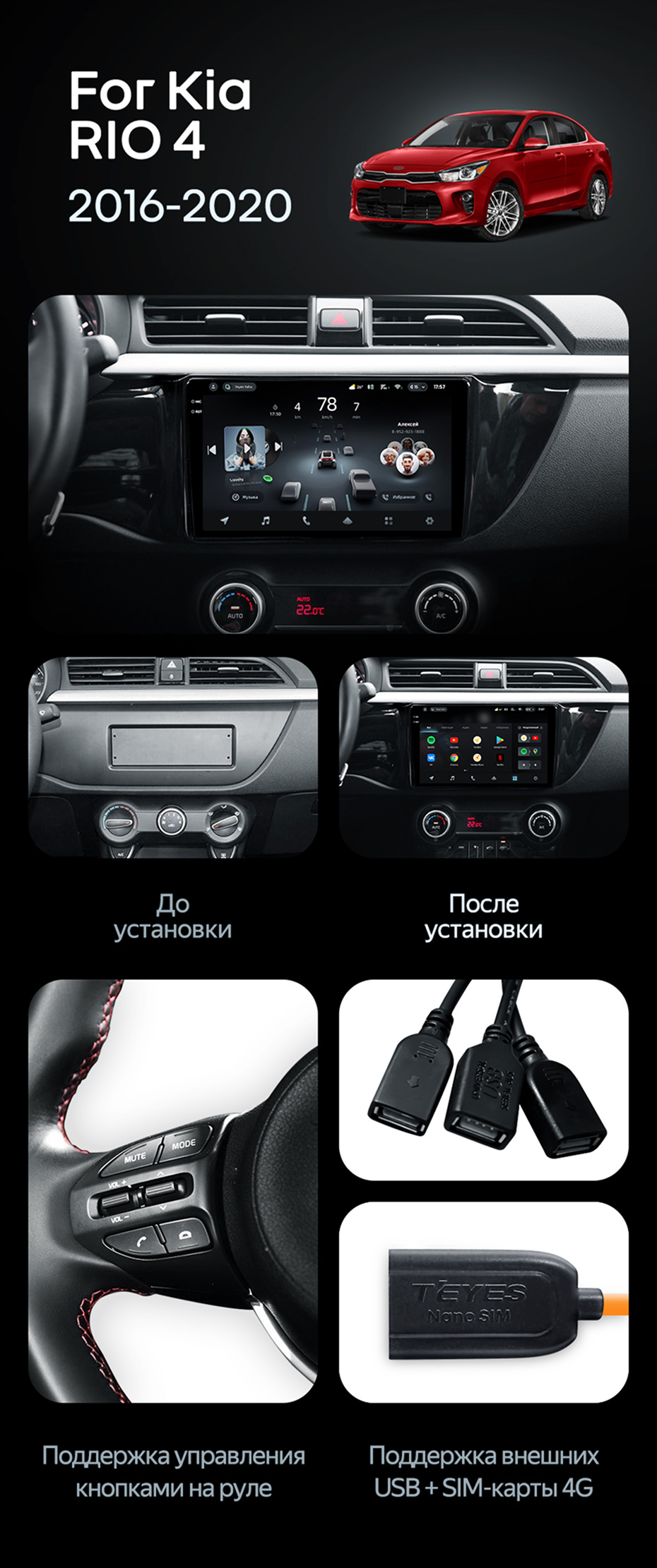 Штатная магнитола Teyes CC4 Pro 12/256 Kia Rio 4 (2016-2020) Тип-B - купить всего за 68 230 руб. в интернет-магазине в Магнитогорске Teyes.com.ru. ✓ Самый лучший выбор мультимедиа ✓ Лучшая замена штатному ГУ ✓ Тел. +7 (800) 775-31-74