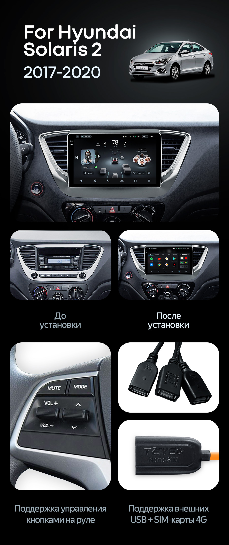 Штатная магнитола Teyes CC4 Pro 8/128 Hyundai Solaris 2 (2017-2020) F1 Тип-B - купить всего за 59 500 руб. в интернет-магазине в Магнитогорске Teyes.com.ru. ✓ Самый лучший выбор мультимедиа ✓ Лучшая замена штатному ГУ ✓ Тел. +7 (800) 775-31-74