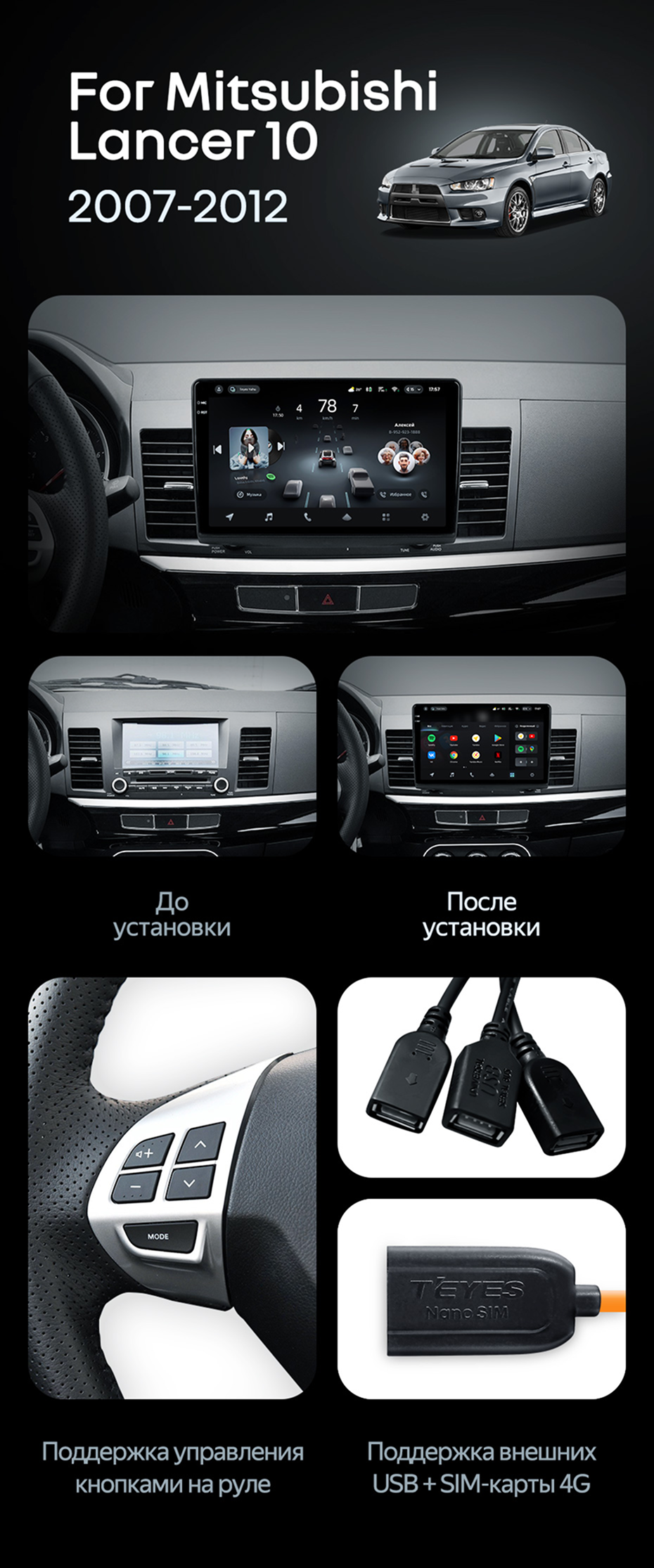 Штатная магнитола Teyes CC4 Pro 8/128 Mitsubishi Lancer 10 CY (2007-2012) Тип-A - купить всего за 58 110 руб. в интернет-магазине в Магнитогорске Teyes.com.ru. ✓ Самый лучший выбор мультимедиа ✓ Лучшая замена штатному ГУ ✓ Тел. +7 (800) 775-31-74