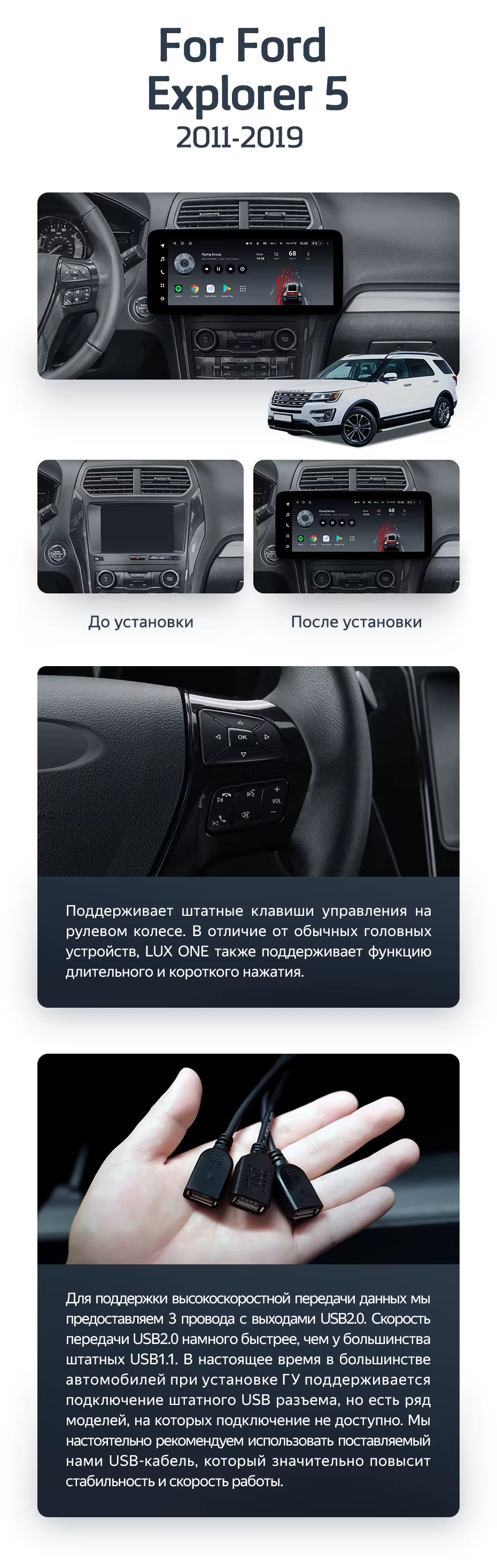 Штатная магнитола Teyes LUX ONE 4/64 Ford Explorer 5 (2011-2019) - купить всего за 48 300 руб. в интернет-магазине в Магнитогорске Teyes.com.ru. ✓ Самый лучший выбор мультимедиа ✓ Лучшая замена штатному ГУ ✓ Тел. +7 (800) 775-31-74