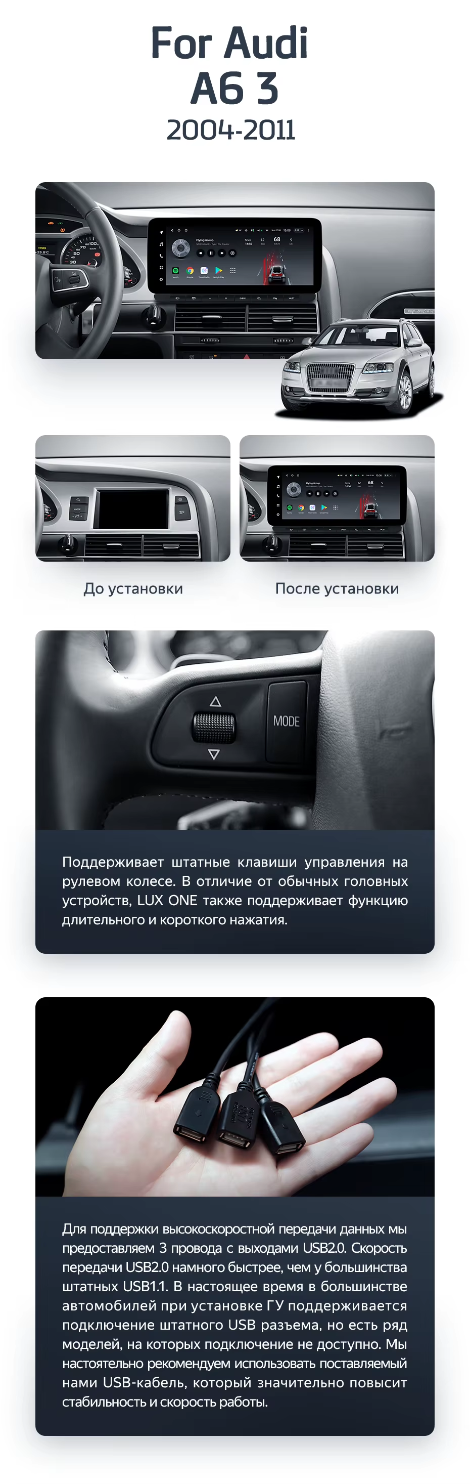 Штатная магнитола Teyes LUX ONE 6/128 Audi A6 3 C6 (2004-2011) - купить всего за 47 500 руб. в интернет-магазине в Магнитогорске Teyes.com.ru. ✓ Самый лучший выбор мультимедиа ✓ Лучшая замена штатному ГУ ✓ Тел. +7 (800) 775-31-74