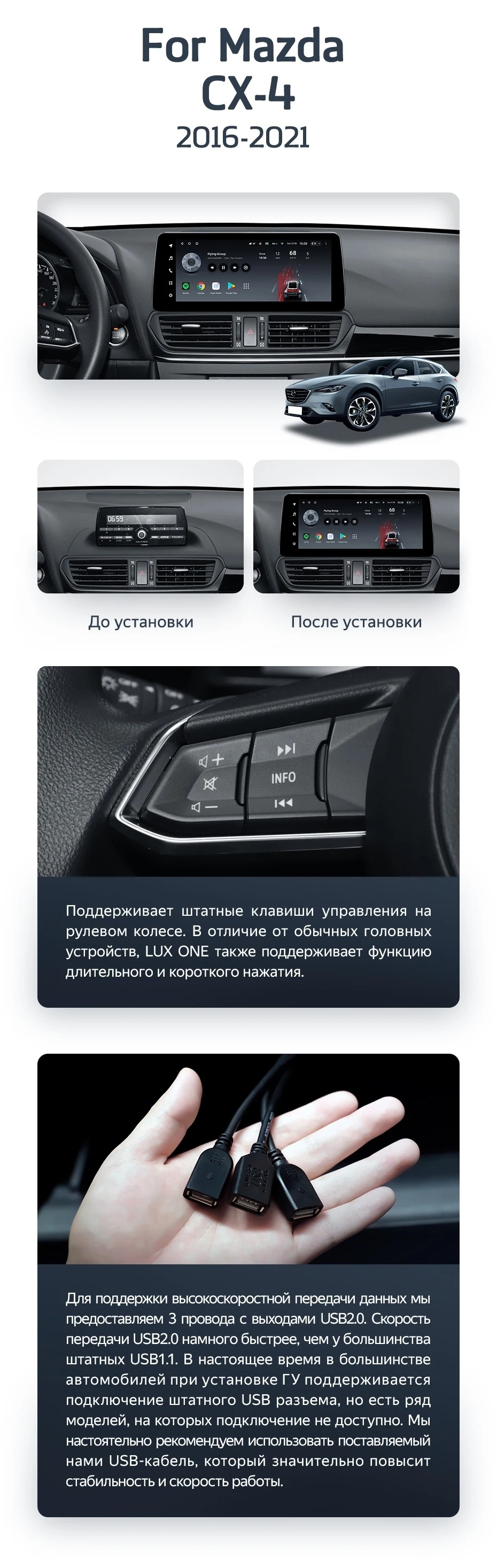 Штатная магнитола Teyes LUX ONE 6/128 Mazda CX-4 (2016-2021) Тип-A - купить всего за 45 300 руб. в интернет-магазине в Магнитогорске Teyes.com.ru. ✓ Самый лучший выбор мультимедиа ✓ Лучшая замена штатному ГУ ✓ Тел. +7 (800) 775-31-74