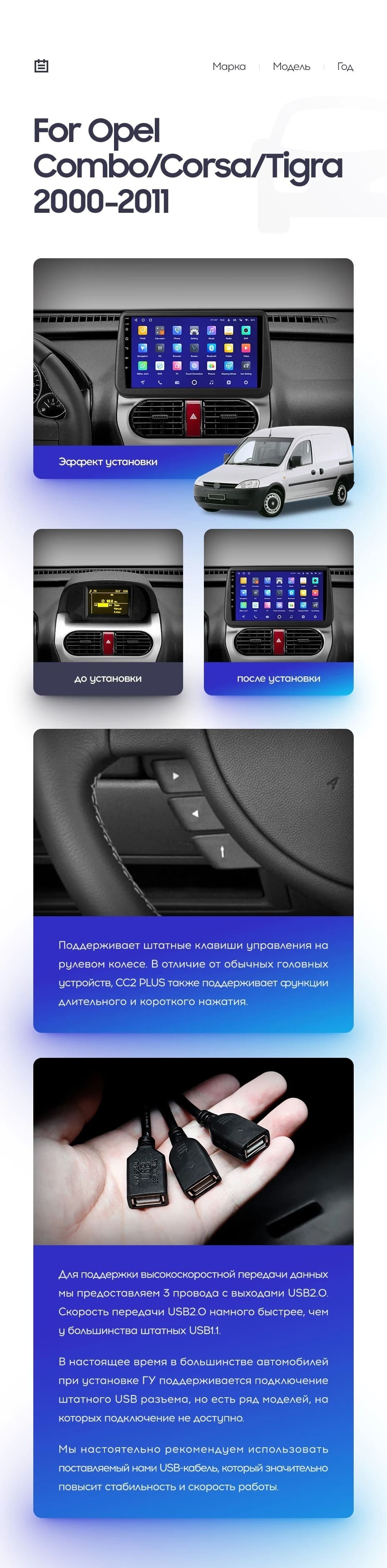 Полный комплект установки магнитолы Teyes с рамкой и проводкой можно выбрать в каталоге штатных магнитол Opel Combo Corsa Tigra (2000-2011).